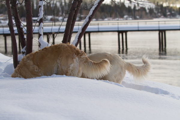 More digging and butt shots. Still not a clue what they are after. It seems to be driving them AND me crazy. Hope you enjoyed my SUNDOGS IN THE SNOW vacation. Next post back to reality at the SUNDOG RANCH….reality is not so bad.