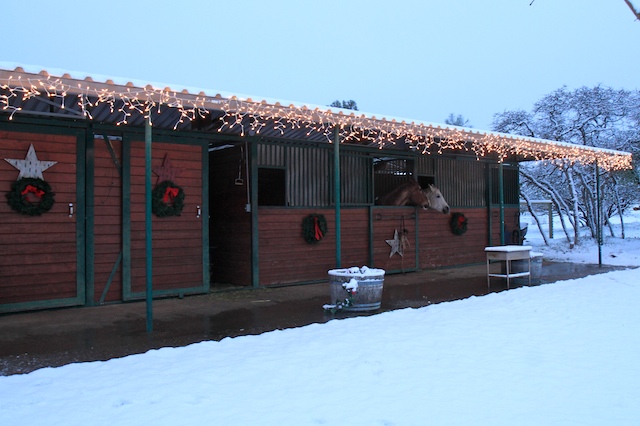 Then he built our very sweet shed row barn, seen here on New Years Day 2011.