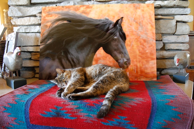 This is her present day spot. Near the fireplace graced behind with photography by your truly.