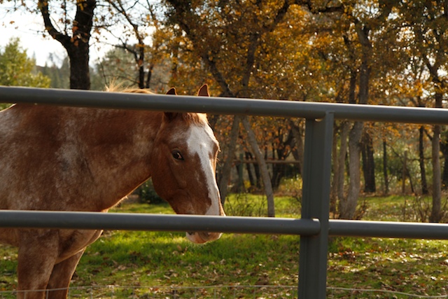 Meet Dublin, a Alpine goat. This is a goat you don’t know whether to hug or strangle. He is into everything, the hay room, the tack room, the treat bucket, you name it. In this photo he has his head stuck in a gate. I decided to leave him there for a few minutes to see if he would learn his lesson and not stick his head everywhere. Mean of me huh? Guess what? No lesson learned. Fortunately despite his annoying traits he is very loving too, so he gets to stay on the ranch and not end up in someone’s taco.