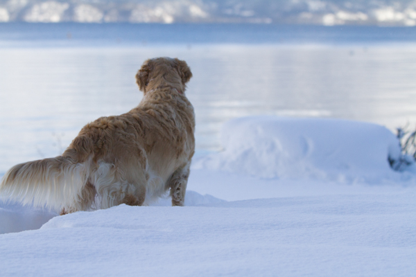 Being with my dogs and camera in the powdery snow in my favorite place in the world is heavenly. Not only heavenly for me but for my dogs. Even in the dead of winter my dogs want to head for the water. Last post you saw Maisie and Sasha near and IN in the Truckee River. This post shows Maisie and Sasha at Lake Tahoe. I put the brakes on swimming this day. Was afraid Maisie’s puppies would get too cold inside her and I was not in the mood for wet dogs in the house since the backyard was literally covered in sheets of ice and snow.