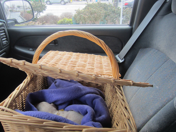 Here we have Lakota. He thought hanging out in the basket was just fine.