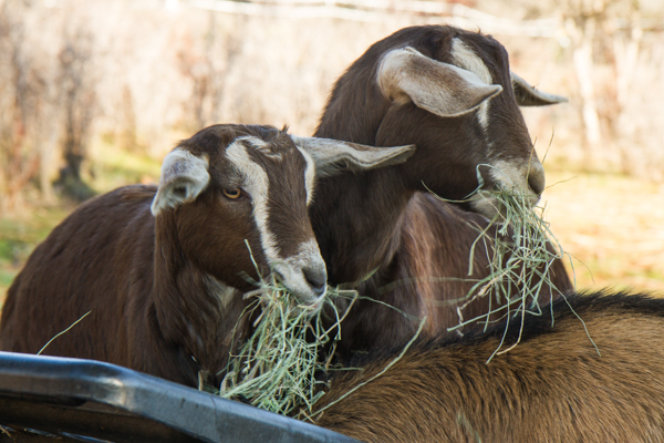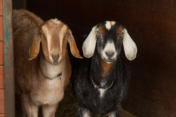 Meanwhile meet some of the goats. Mr. Cinnamon on the left and Cinder. They are brother and sister Nubian and are pretty much inseparable. We got them as adults a few years ago to try having goats clear our brush land. Are they cute together or what?
