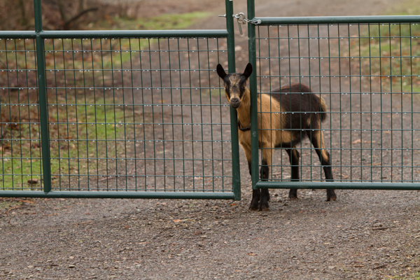 Cinder at the gate. 2010 “LET ME OUT” A common pose among goats.