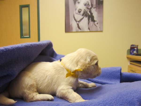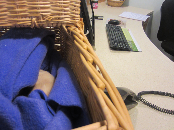 We arrived at the vet and got checked in. I chose to stay sacked out in the basket. Just too much stimulation and were the heck was my real MOM????
