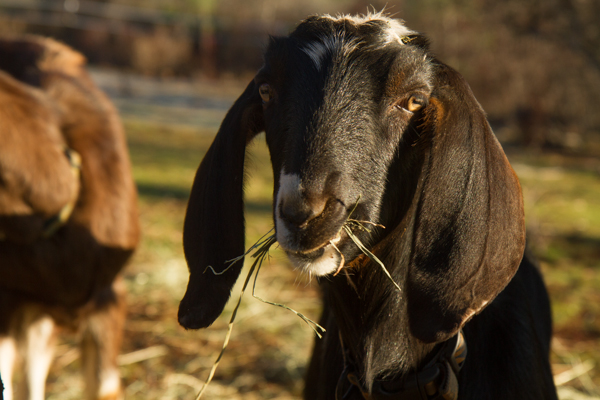 Next we have Malachite and Topaz. They are brother and sister and are a Nubian and Toggenburg cross, hence the airplane ears. The Toggenburg give them that pretty chocolate color. Their passion is jumping into and eating out of wheelbarrows.
