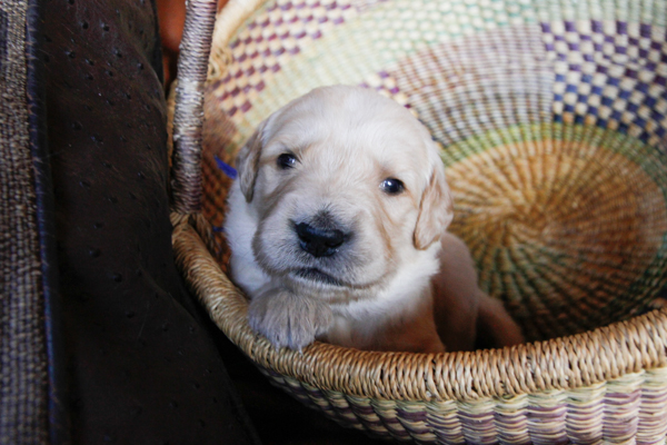 Here we have Shoshoni in the our farmers market basket. He was not into this photo shoot. Please let me go back to my whelping box and sleep who ever you are with that big black thing in my face.