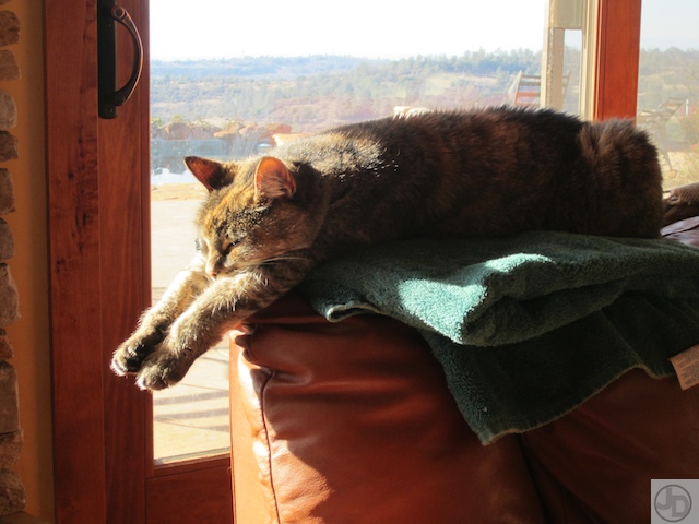 Did you ever wonder if “The Precious” ever goes over the edge? Well it does. As you can see Yolo still has his eye on “The Precious” but I have to be truthful and admit, it took quite sometime for him to put two and two together and figure out how to get to it.